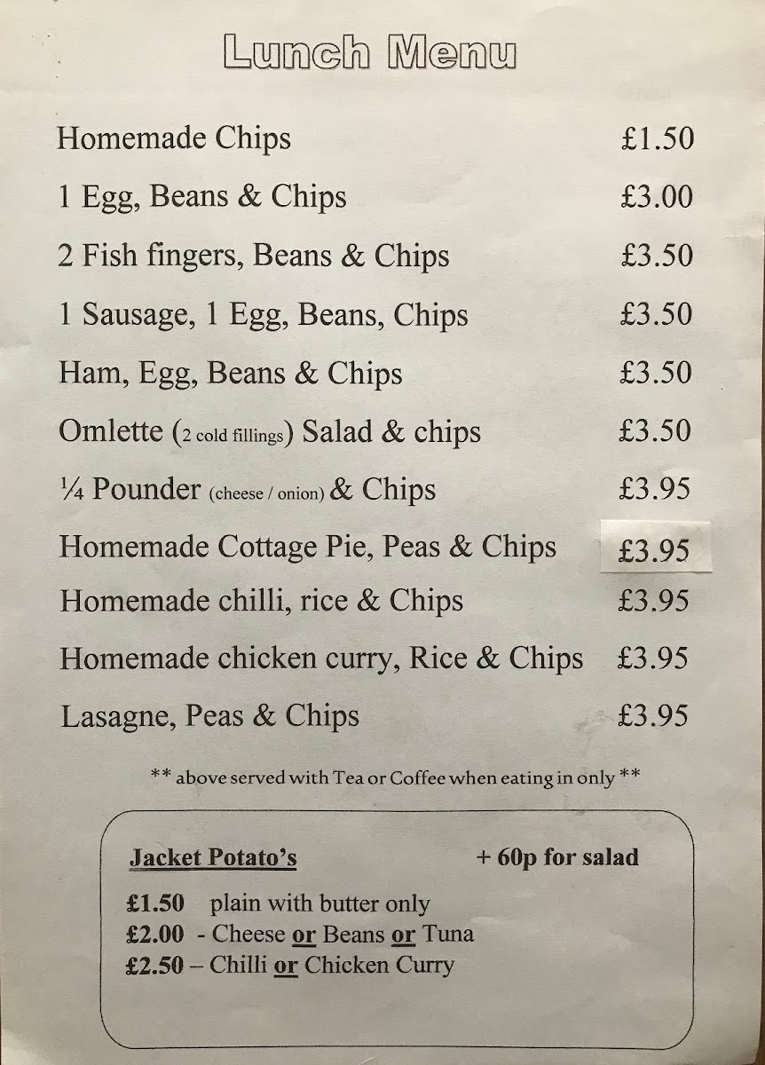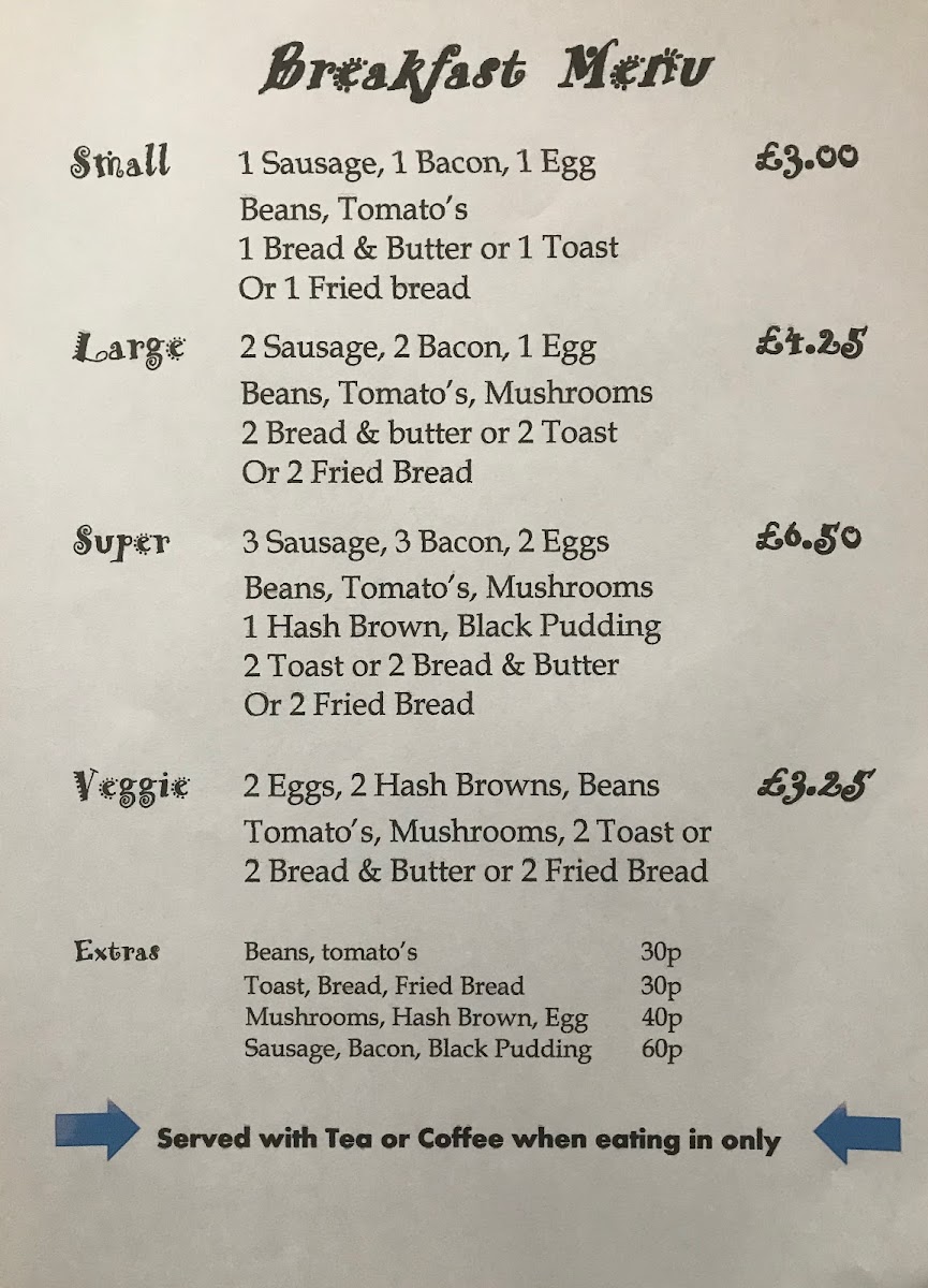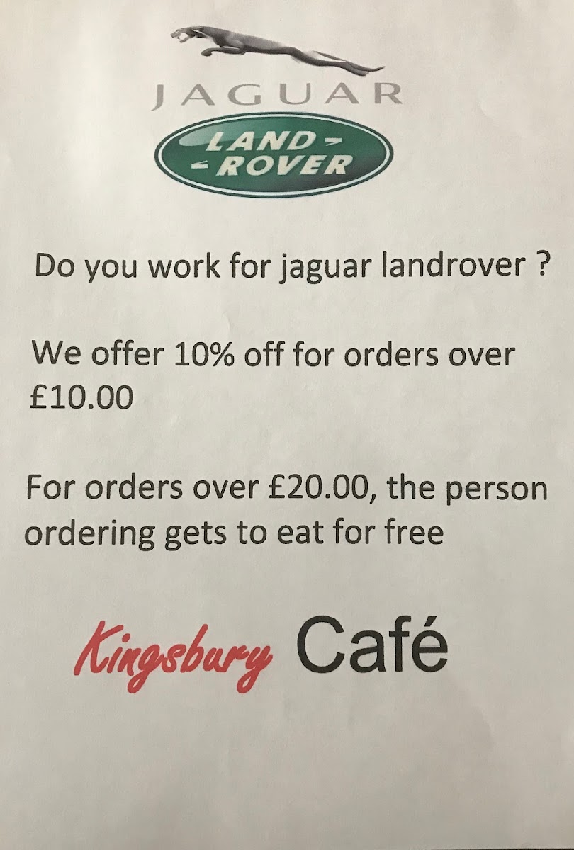 Kingsbury Cafe Menu